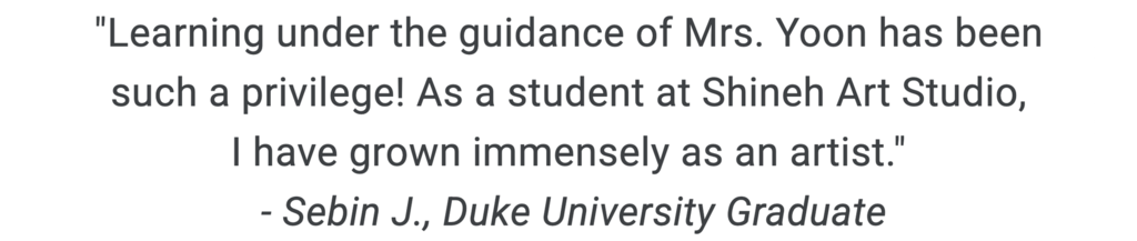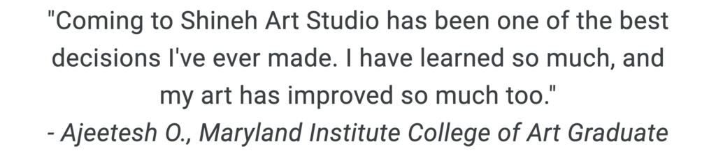 Join us for year-round classes and camps! Director Shineh leads every class and camp, bringing 20+ years of expertise and a proven record of student success—from national art awards to top-tier college admissions. Guided by our philosophy, Confidence Leads to Creativity, our ultimate goal is to help and guide students to become well-rounded artists who are confident without compromise. Register now to secure your spot; spaces are limited to ensure personalized attention.
